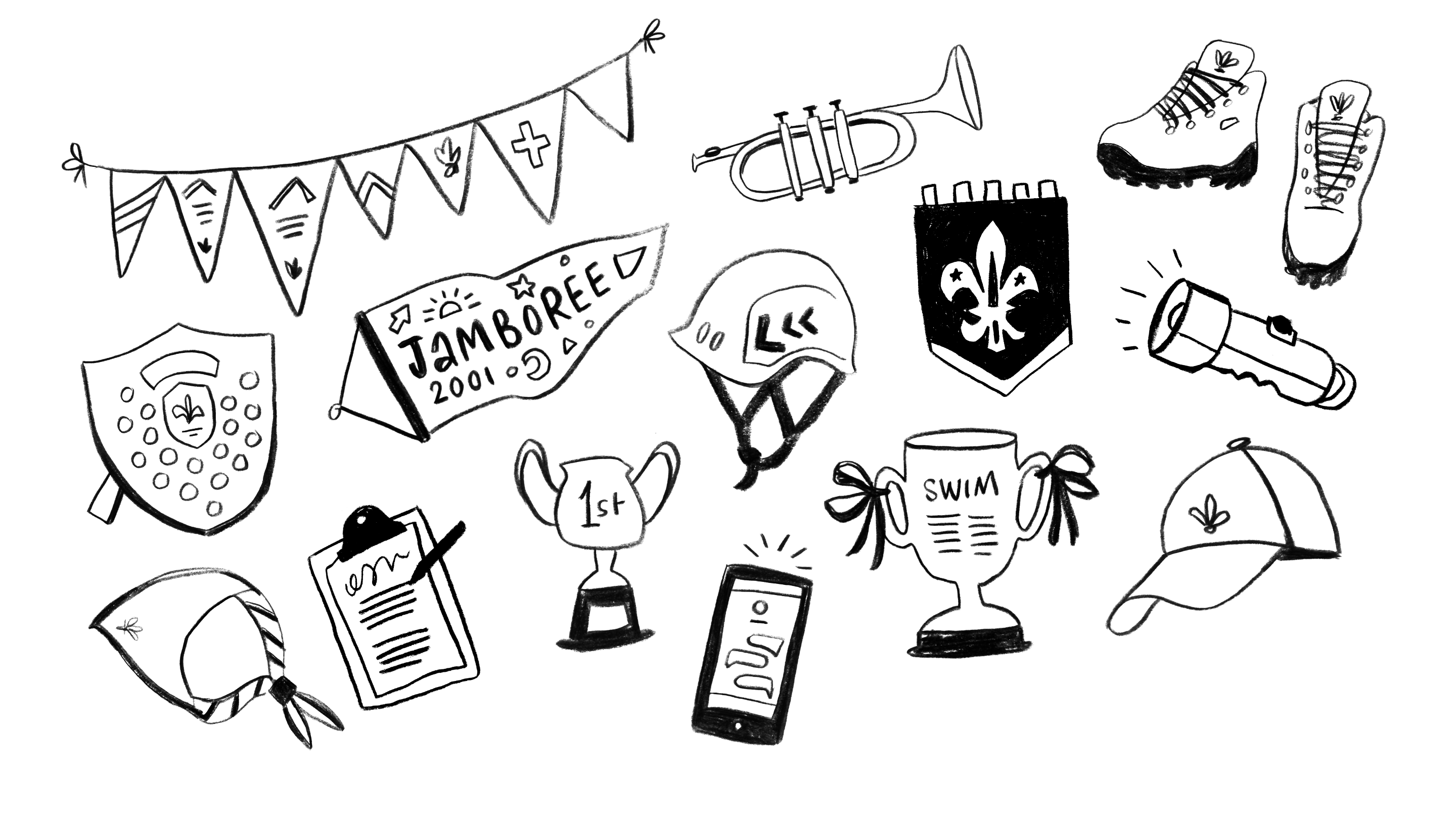 A selection of hand drawn icons created while working with the Scouting Association.